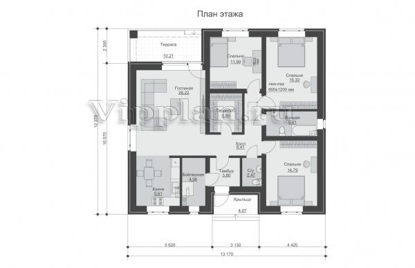 | Размеры дома: | 13.17м×12.37м |